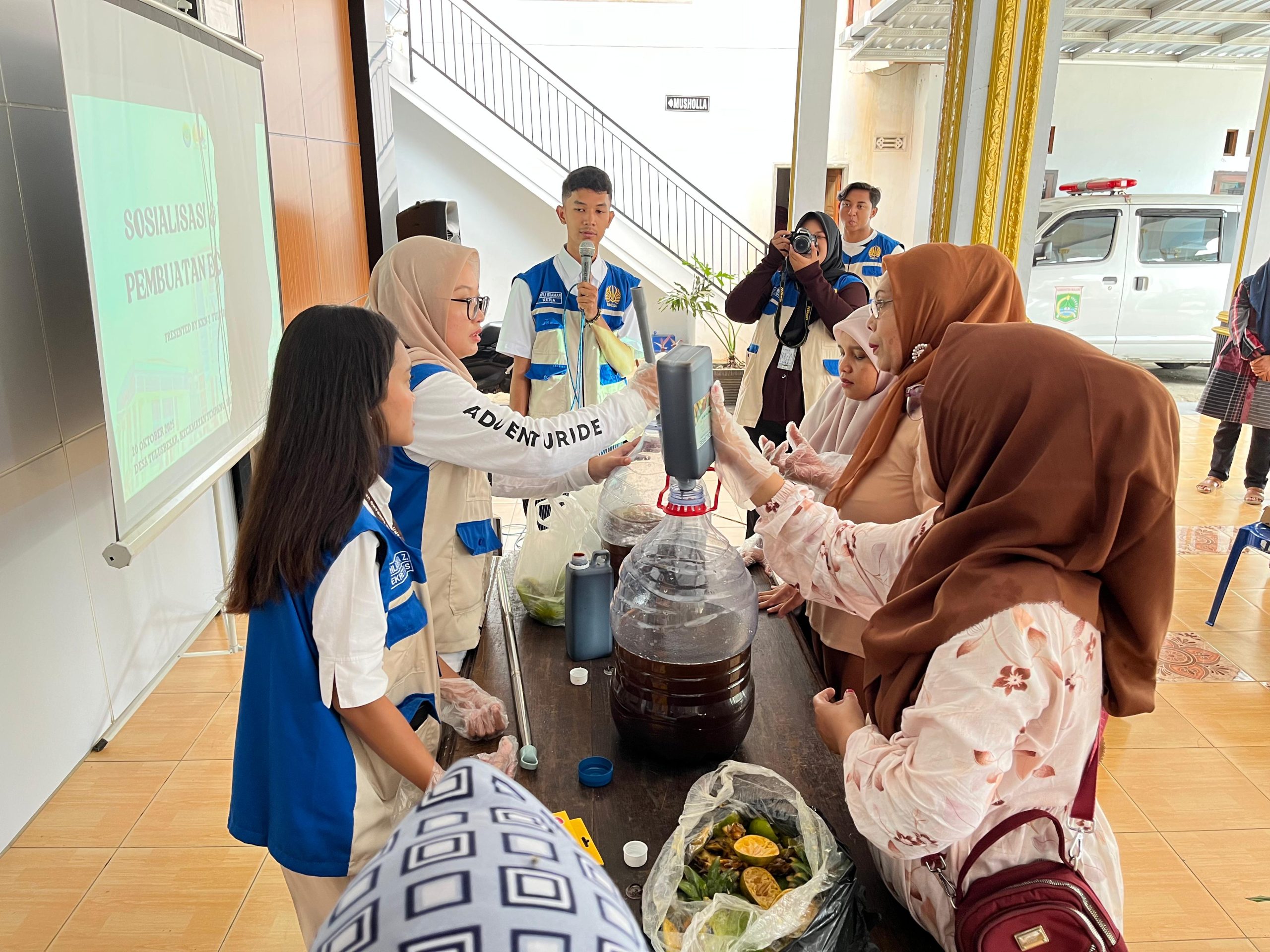 “Ecoenzim adalah cairan yang dihasilkan dari proses fermentasi sampah organik dengan menggunakan mikroorganisme. Cairan ini dapat digunakan sebagai disinfektan alami untuk membersihkan permukaan dan juga sebagai pupuk organik untuk tanaman, untuk hasil bagus minimal 1 sampai 3 bulan bisa di pakai,” kata Shinta.