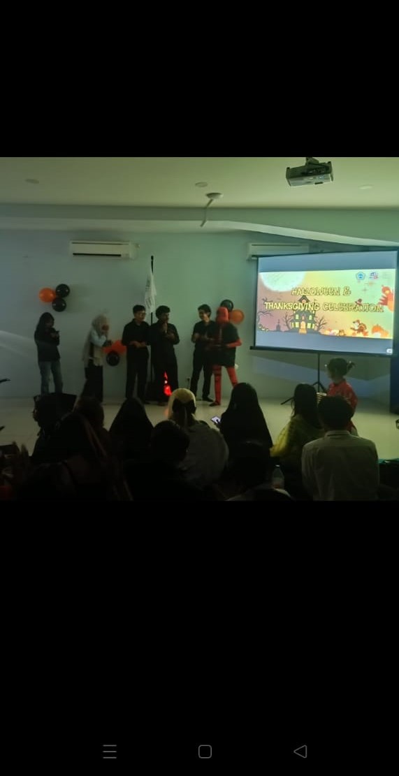 Selain itu, acara ini juga menggelar kompetisi kostum Halloween yang menarik perhatian para peserta, diikuti dengan permainan seru seperti Secret Treasure. Namun, acara inti yang paling dinanti adalah pemaparan materi mengenai Halloween dan Thanksgiving oleh dua narasumber asal Amerika, Emily dan Bill. Emily, yang berdomisili di Surabaya, memberikan wawasan tentang makna mendalam dari perayaan Thanksgiving, sedangkan Bill, yang bergabung secara virtual dari Chicago, mengulas sejarah dan tradisi Halloween di Amerika.