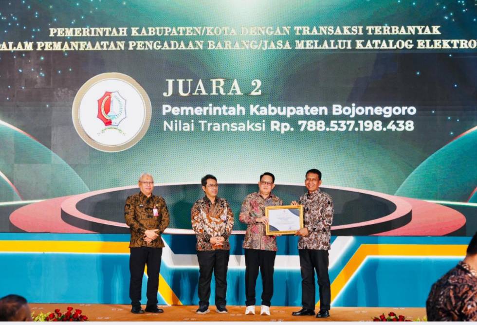 Pada tahun ini, Bojonegoro berhasil meraih Juara 2 untuk kategori Pemkab/Pemkot dengan transaksi terbanyak dalam pemanfaatan pengadaan barang/jasa melalui katalog elektronik (e-catalog). Total transaksi yang dicatatkan mencapai Rp. 788.537.198.438,-menempatkan Bojonegoro sebagai salah satu daerah dengan pemanfaatan e-purchasing serta angka yang menunjukkan komitmen kuat daerah dalam mengoptimalkan layanan pengadaan berbasis digital.