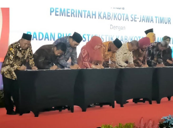 Kabarjagad, Jombang – Kabupaten Jombang menjadi salah satu daerah yang ikut menandatangani nota kesepakatan antara Pemerintah Provinsi Jawa Timur, Badan Pusat Statistik (BPS) Republik Indonesia, serta 37 pemerintah kabupaten/kota se-Jawa Timur bersama BPS kabupaten/kota.