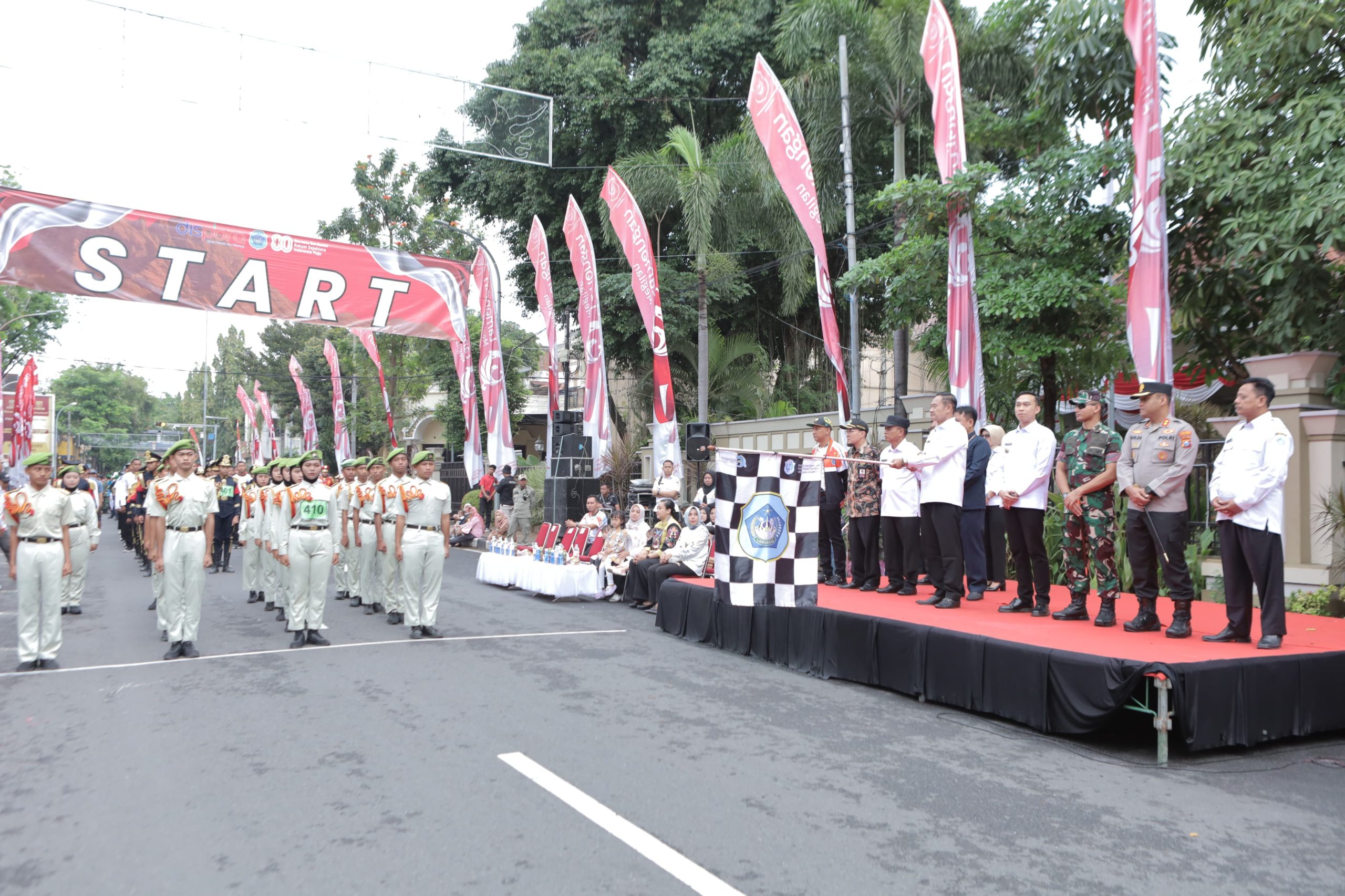 Kegiatan berlangsung meriah dengan antusiasme tinggi dari para peserta maupun masyarakat yang memadati rute gerak jalan.