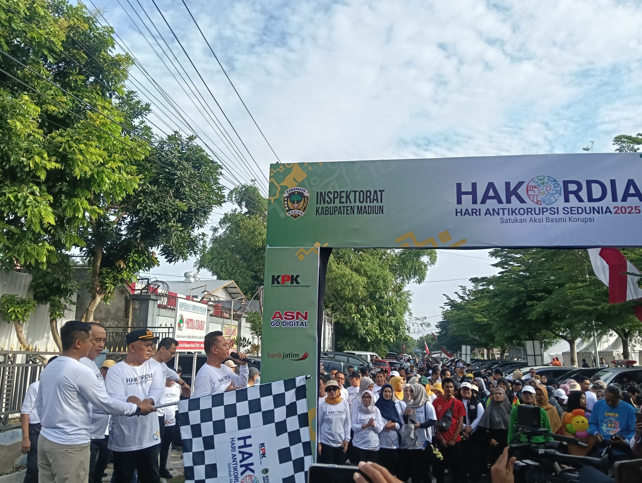 Kabarjagad, Madiun — Peringatan Hari Antikorupsi Sedunia tahun ini berlangsung meriah di lapangan Mojopurno kecamatan Wungu Kabupaten Madiun dengan digelarnya kegiatan jalan santai dan senam bersama pada Sabtu pagi. Acara yang dipusatkan di halaman kantor pemerintah daerah itu diikuti ratusan peserta dari jajaran ASN, pelajar, komunitas pemuda, hingga masyarakat umum.