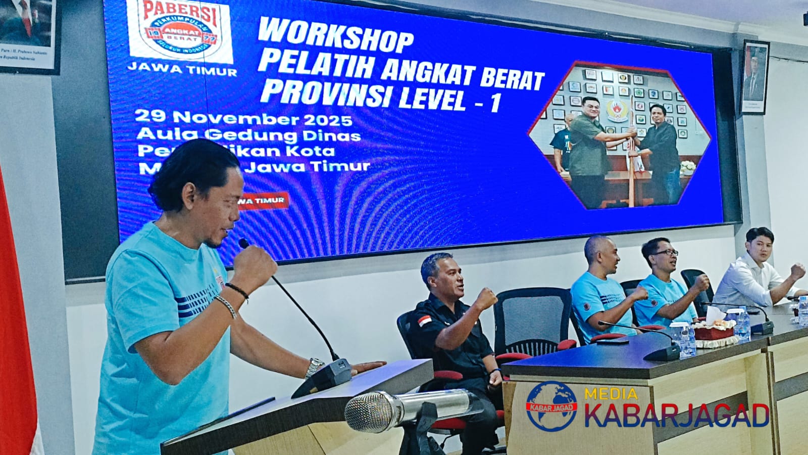 Kabarjagad, Kota Malang – Persatuan Angkat Berat Seluruh Indonesia (PABERSI) Jawa Timur menunjukkan komitmen serius dalam memajukan olahraga angkat berat. Bertempat di Aula Gedung Dinas Pendidikan Kota Malang, pada Sabtu (29/11/2025), PABERSI Jatim sukses menggelar “Workshop Pelatih Angkat Berat Provinsi Level-1”. Acara ini dibanjiri antusiasme luar biasa dari pegiat angkat berat se-Jawa Timur.