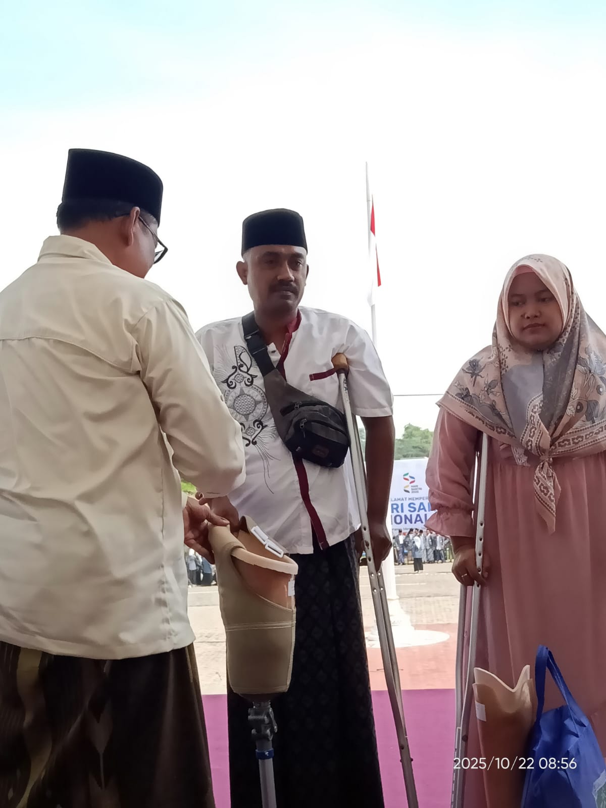 Selain penyerahan alat bantu, kegiatan juga dirangkaikan dengan upacara Hari Santri Nasional yang berlangsung khidmat. Para santri dari berbagai pondok pesantren turut hadir mengenakan busana khas santri, membawa semangat perjuangan dan kemandirian.
