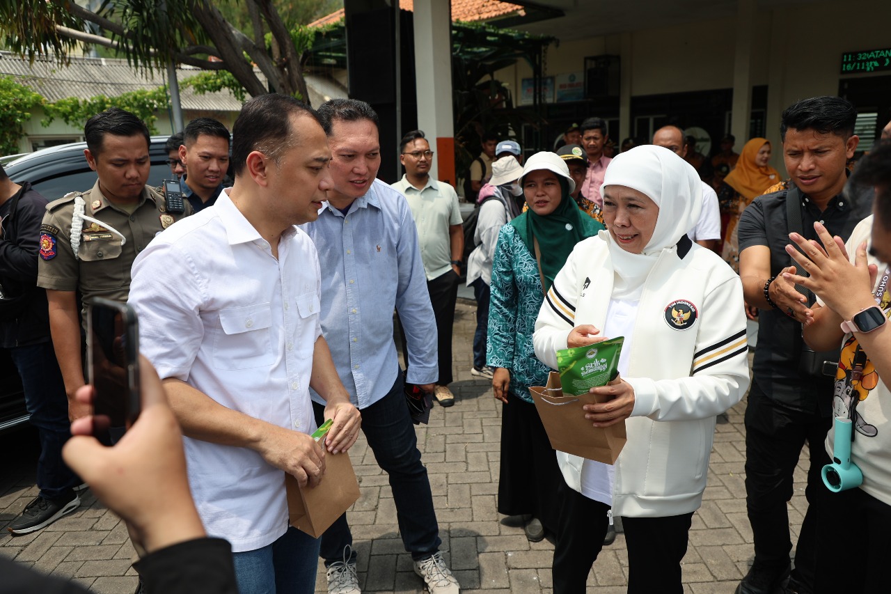 Gubernur Jawa Timur, Khofifah Indar Parawansa, bersama Wali Kota Surabaya, Eri Cahyadi, meninjau langsung pelaksanaan Pasar Murah tersebut. Keduanya juga terlihat aktif membantu menyalurkan beras kepada warga yang tengah antre.