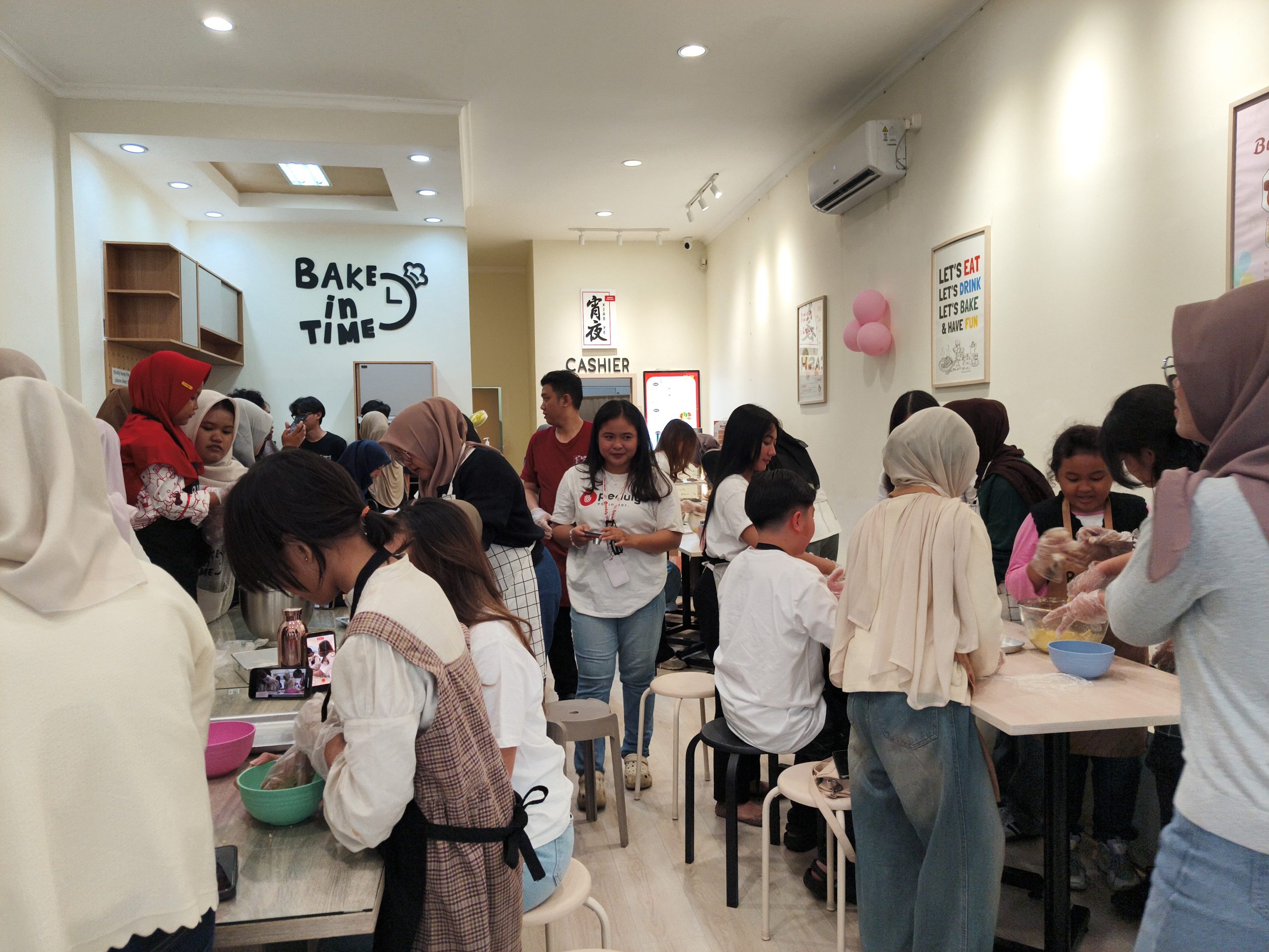 Anak-anak yang tergabung dalam komunitas belajar bahasa Inggris gratis di wilayah eks Dolly menunjukkan antusiasme mereka dengan mengikuti instruksi dari para staf Bake In Time. Mulai dari memakai sarung tangan plastik hingga akhirnya memanggang kue cantik.