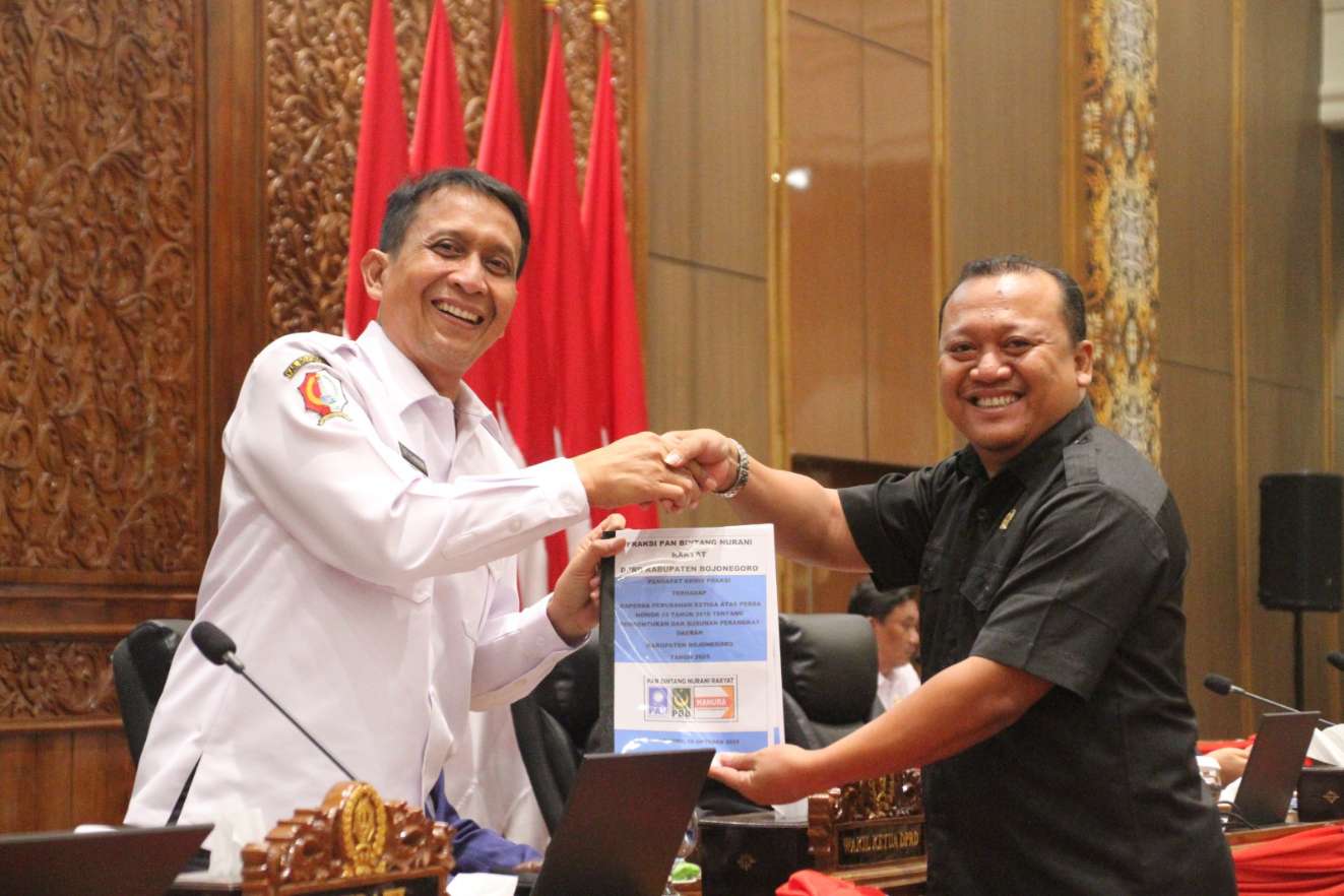 “Dengan mengucap Bismillahirrahmanirrahim, Fraksi PAN Bintang Nurani Rakyat menerima dan menyetujui Raperda ini untuk ditetapkan menjadi Peraturan Daerah,” pungkas Moch. Choirul Anam, S.Pd., M.AP.