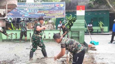 Anggota Koramil Kembangbahu Lamongan Lakukan Pebenahan Pangkalan