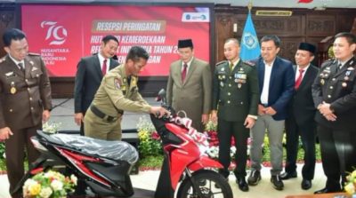 Foto: Ghofur, anggota Satpol PP Paciran menerima penghargaan, di Pendopo Lokatantra. Kabarjagad.id, Lamongan – Satpol…
