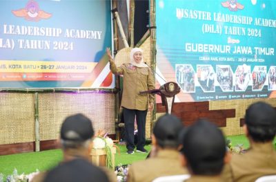 Gurbernur Jawa Timur, Khofifah Indar Parawansa saat menutup kegiatan Disaster Leadership Academy (DiLA) di Coban…