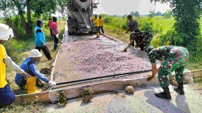 Kabarjagad, Lamongan – Babinsa Koramil 0812/25 Sarirejo membantu warga dalam melakukan pengerjaan cor jalan penghubung…