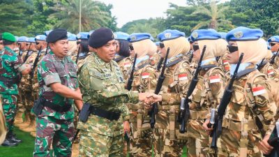 Asops Panglima TNI, Letjen TNI Bobby Rinal Makmun, S.I.P., saat memberangkatkan 850 Prajurit ke Republik…