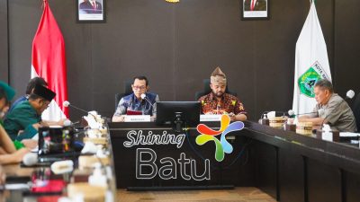 Wali Kota Batu Nurochman dan Wakil Wali Kota Heli Suyanto saat memimpin rakor Lintas sektoral…