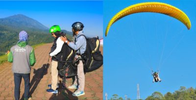 Pj. Gubernur Jawa Timur Adhy Karyono saat mencoba paralayang di Gunung Banyak Kota Batu. (Ist)…
