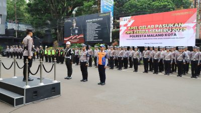 Wakapolresta Malang Kota AKBP Oscar Syamsuddin saat memimpin Apel Gelar Pasukan Operasi Zebra Semeru 2025….