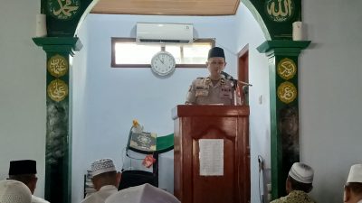 Foto : Kasie humas Polres Madiun kota Iptu Ubaidillah saat bertugas sebagai Khotib dan imam…