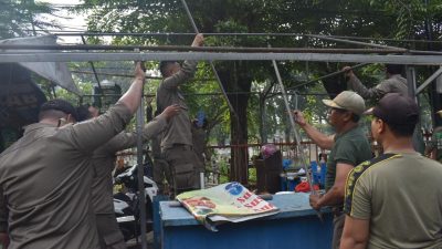 Satpol PP Surabaya Tertibkan 30 PKL yang Berjualan di Atas Saluran Air Kawasan Klenteng Mbah Ratu