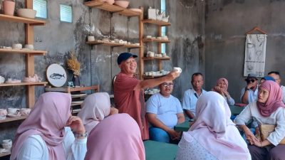 Founder Studio MataHati Ceramics, Muchlis Arif saat memberikan keterangan seni keramik kepada pengunjung Studio MataHati…