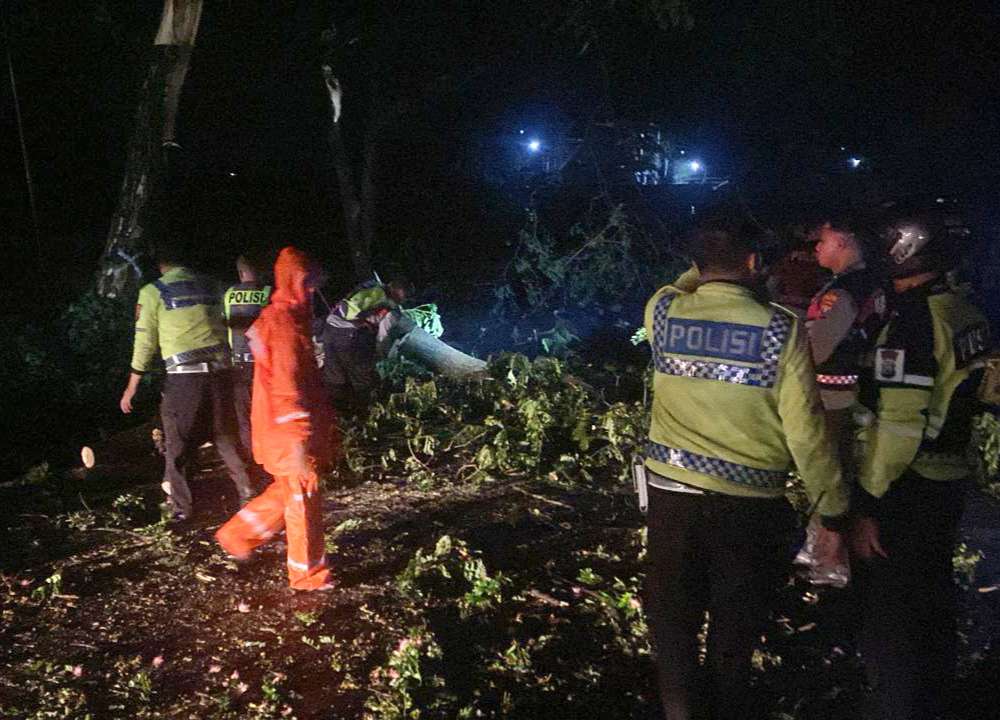 Pohon-pohon yang tumbang berhasil dipotong dan disingkirkan ke tepi jalan, sehingga arus lalu lintas kembali lancar dan normal setelah sebelumnya mengalami kemacetan panjang.