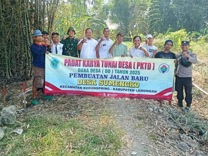 Kabarjagad, Lamongan – Babinsa Koramil 0812-11 Kedungpring jajaran Kodim 0812 Lamongan Serka Angger bersama warga desa melaksanakan kegiatan Program Padat Karya di Desa Sumengko Kecamatan Kedungpring, Kabupaten Lamongan, Kamis (16/10/2025).