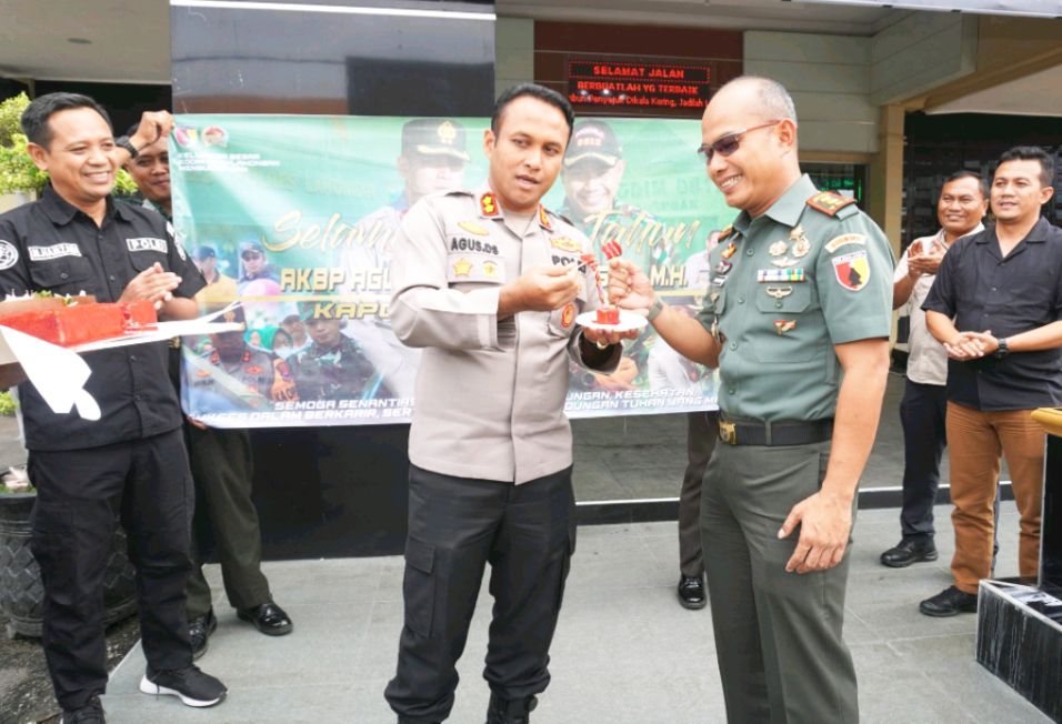 Kabarjagad, Lamongan – Dalam sebuah momen yang menghangatkan hati dan meneguhkan makna sejati dari sinergi, Komandan Kodim (Dandim) 0812 Lamongan, Letkol Inf Deni Suryo Anggo Digdo, beserta jajaran Prajuritnya, mendatangi Mapolres Lamongan, untuk memberikan kejutan ulang tahun yang penuh keakraban kepada Kapolres Lamongan, AKBP Agus Dwi Suryanto, S.I.K., M.H, Jumat (7/11/2025).