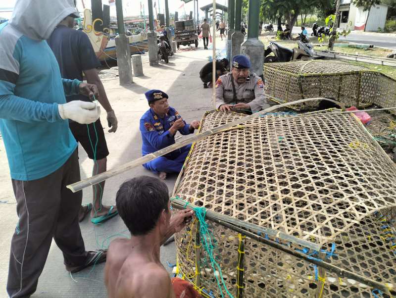 Dalam kesempatan itu, personel Sat Polairud tidak hanya memberikan pelayanan dan himbauan keselamatan berlayar, tetapi juga membantu para nelayan yang sedang memperbaiki alat tangkap ikan ramah lingkungan berupa bubu.