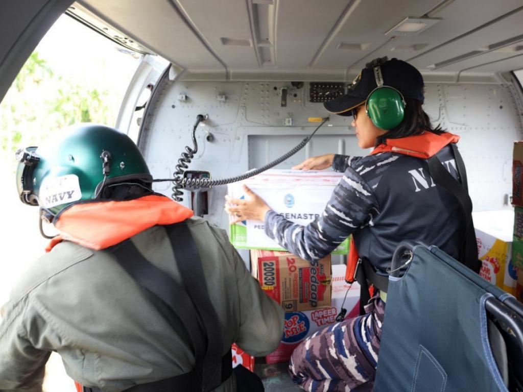Heli Panther yang onboard di KRI dr. Radjiman Wedyodiningrat (RJW)-992 membawa 150 Kg bantuan di masing-masing wilayah berupa bahan makanan, selimut, dan pakaian.