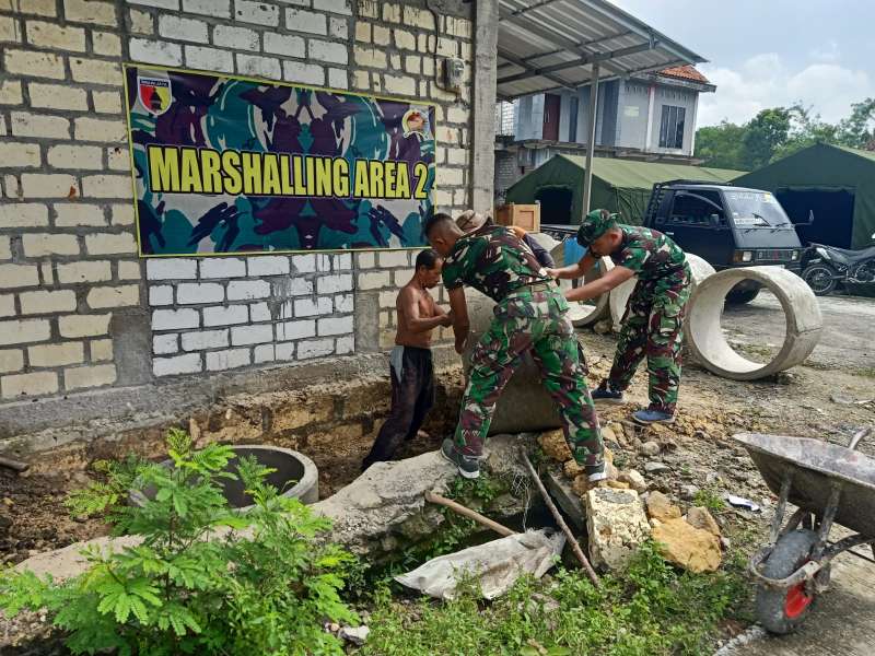 Puluhan Babinsa dari Kodim 0812 Lamongan bersama 27 Prajurit inti Yonif TP 887 KJM melaksanakan kerja bakti besar-besaran untuk merampungkan fasilitas penunjang di Marshalling Area (MA) Ngimbang.