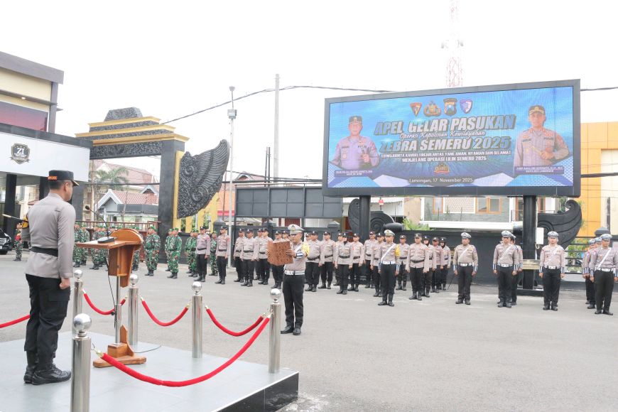 Kabarjagad, Lamongan – Polres Lamongan melaksanakan Apel Gelar Pasukan Operasi Zebra Semeru 2025 yang dipimpin langsung oleh Kapolres Lamongan AKBP Agus Dwi Suryanto, S.I.K., M.Si.