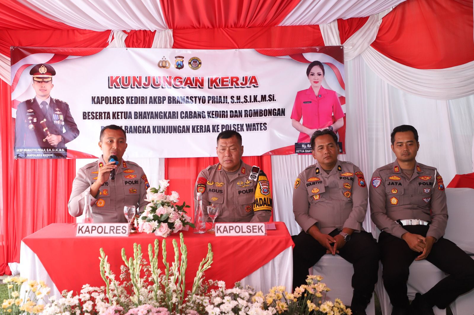 Kabarjagad, Kediri – Dalam rangka memperkuat kedisiplinan dan semangat pengabdian anggota, Kapolres Kediri AKBP Bramastyo Priaji, S.H., S.I.K., M.Si. bersama Ketua Bhayangkari Cabang Kediri Ny. Ratih Bramastyo melaksanakan kunjungan kerja (kunker) ke Mapolsek Wates, Senin (3/11/2025).