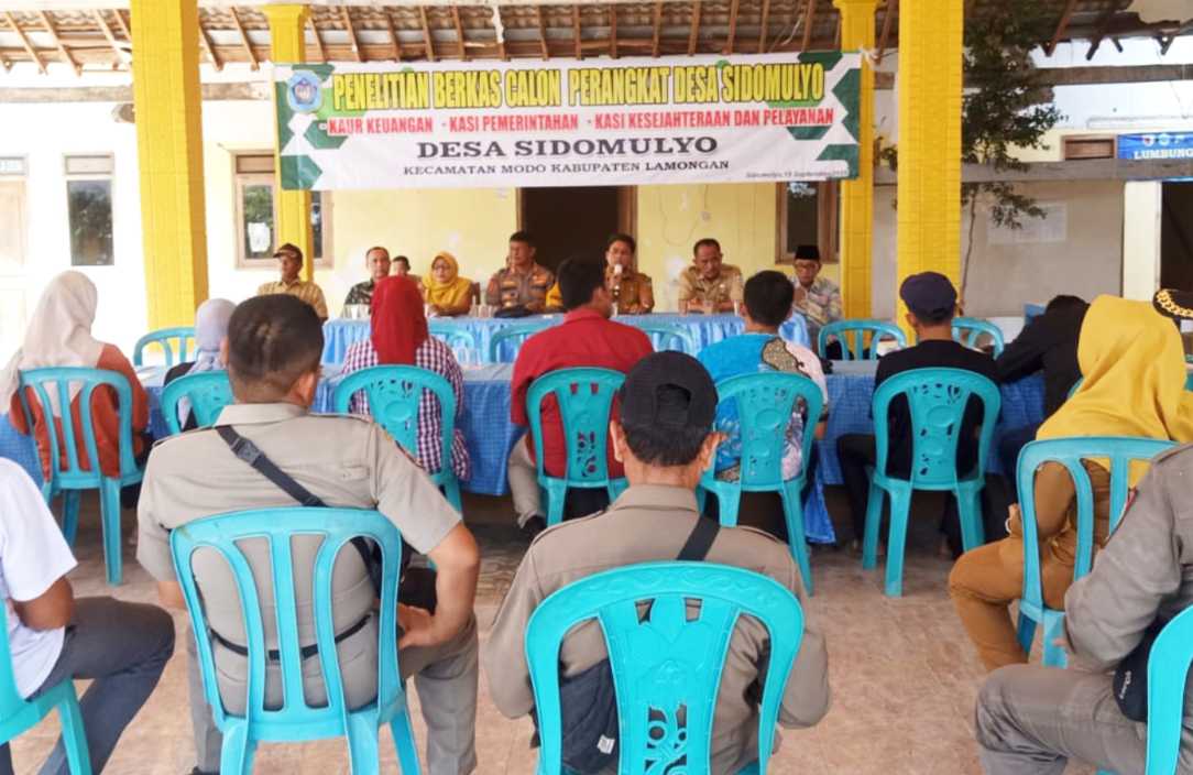 Kabarjagad, Lamongan – Batuud Koramil 0812/12 Modo, Peltu Sutomo, bersama jajaran Muspika Modo, menghadiri kegiatan penelitian berkas administrasi calon perangkat Desa Sidomulyo.