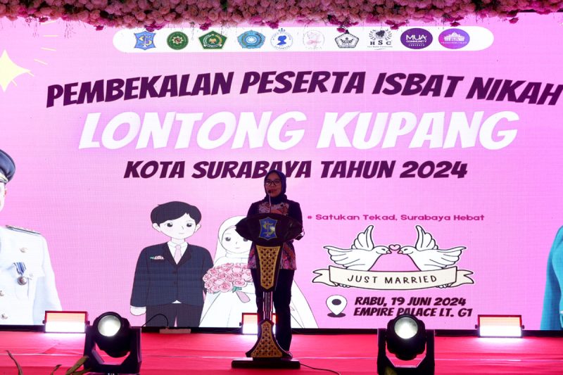 Kabarjagad.id, Surabaya – Pemerintah Kota (Pemkot) Surabaya memberikan pembekalan bagi peserta Isbat Nikah Lontong Kupang (Layanan Online Terpadu One Gate System) tahun 2024, di Empire Palace, Rabu (19/6/2024). Dalam kesempatan tersebut, sebanyak 330 pasangan mengikuti pemeriksaan kesehatan dan melakukan fitting busana pengantin, sebelum pelaksanaan nikah massal pada 3 Juli 2024 mendatang.