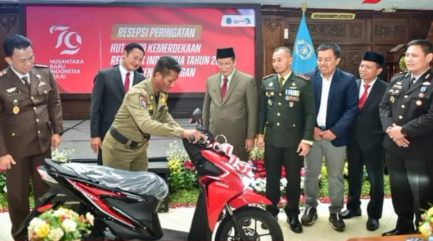 Diserahkan penghargaan berupa 1 unit sepeda motor, Bupati Lamongan Yuhronur Efendi mengapresiasi kesigapan Ghofur dalam memastikan kelancaran prosesi pengibaran bendera.
