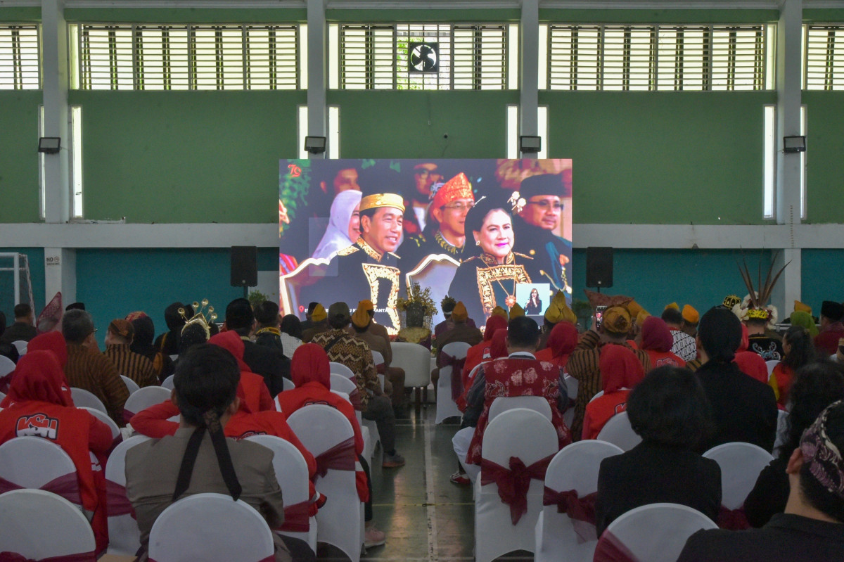 Dalam kesempatan tersebut, Wali Kota Eri menyaksikan prosesi upacara secara daring di Gelanggang Remaja Surabaya. Turut hadir, Ketua TP PKK Kota Surabaya Rini Indriyani, Forkopimda Kota Surabaya, para asisten bersama jajaran OPD di lingkup Pemerintah Kota (Pemkot) Surabaya, masyarakat, dan para pelajar.